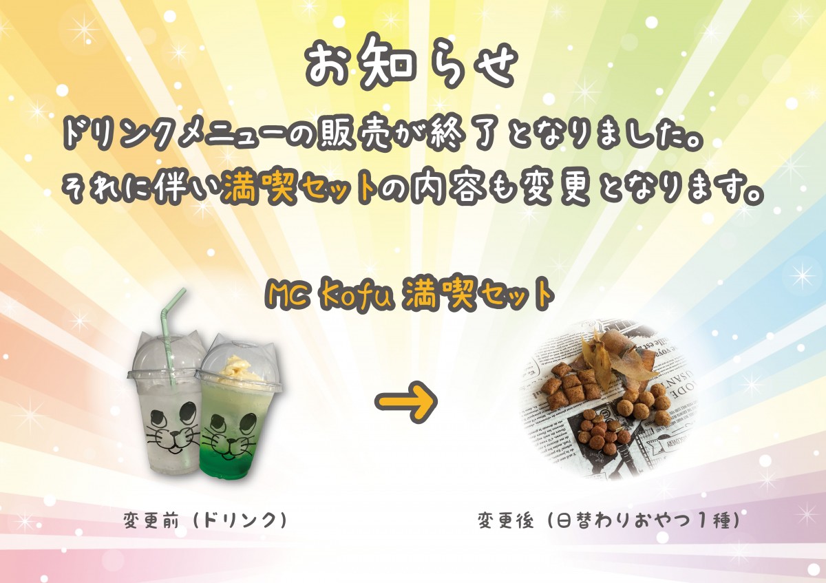 ドリンクメニュー提供の終了に伴い、満喫セットの内容が変更となりました。
