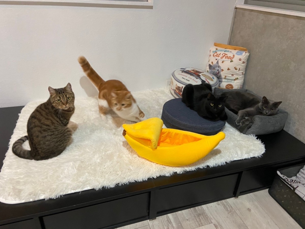猫カフェスペースでは当店自慢の可愛い猫スタッフ達とゆっくりお過ごし頂けます♪