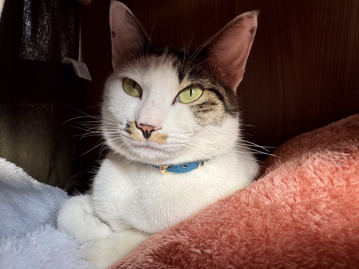 写真はモグちゃんです。成猫ちゃんなのに子猫のようにあどけない表情でとても可愛かったです!