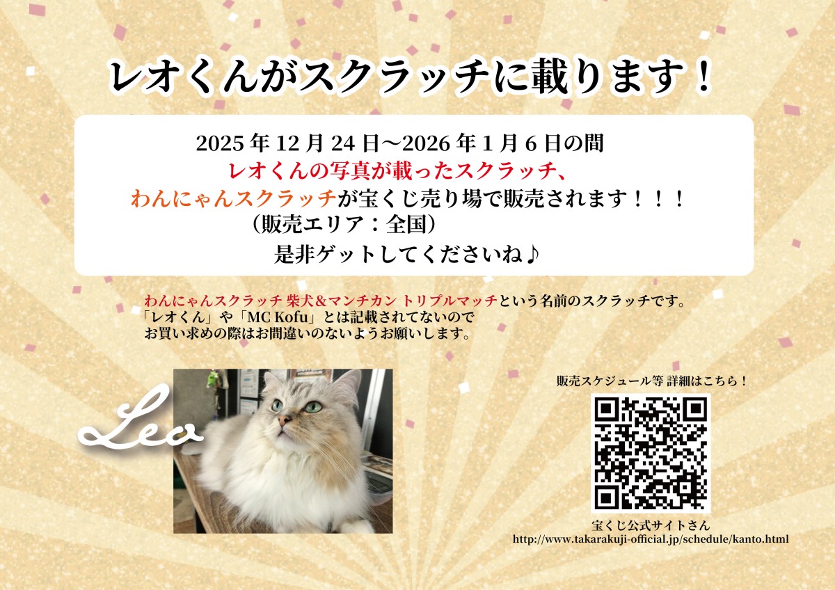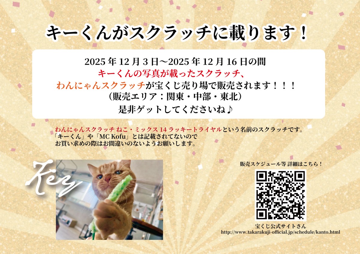 MC Kofuのキーくんが「ねこのきもち」さんの2026年カレンダー表紙に選ばれました!