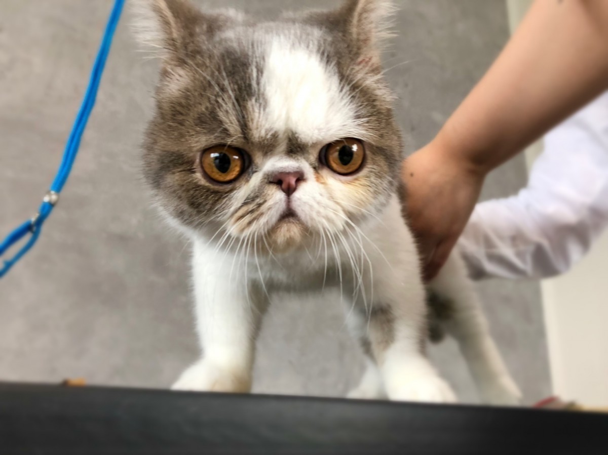 シャンプー、爪切り、お耳掃除のメニューをご利用頂いたエキゾチックショートヘアのきんた君♪