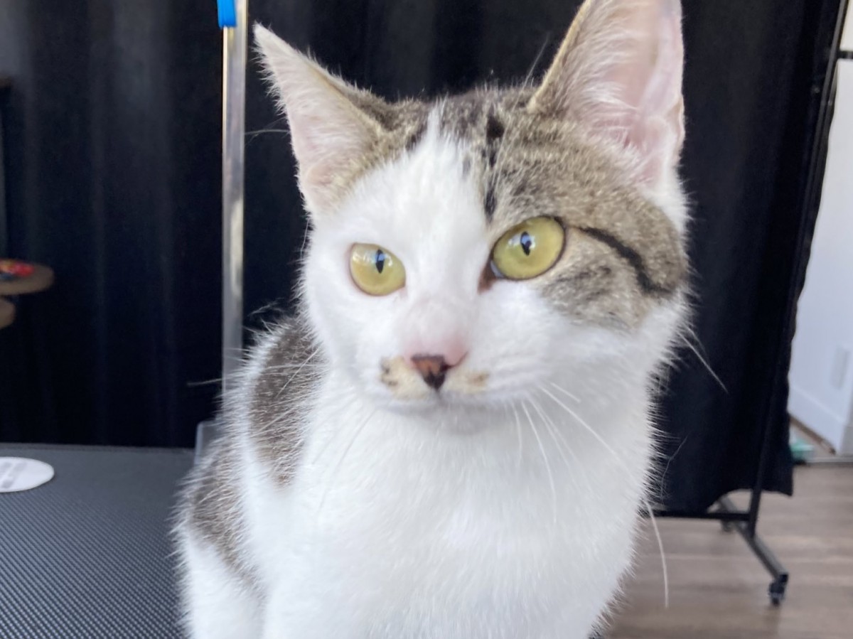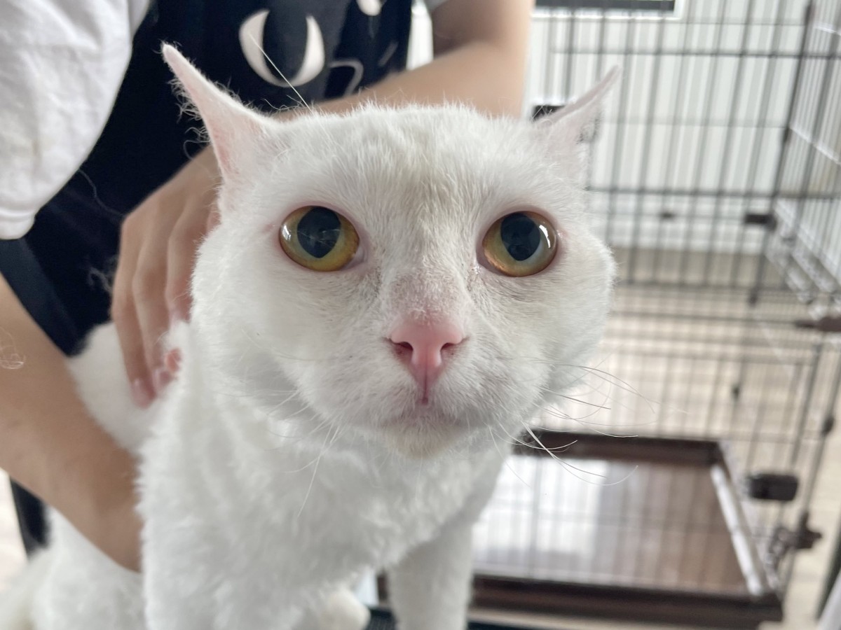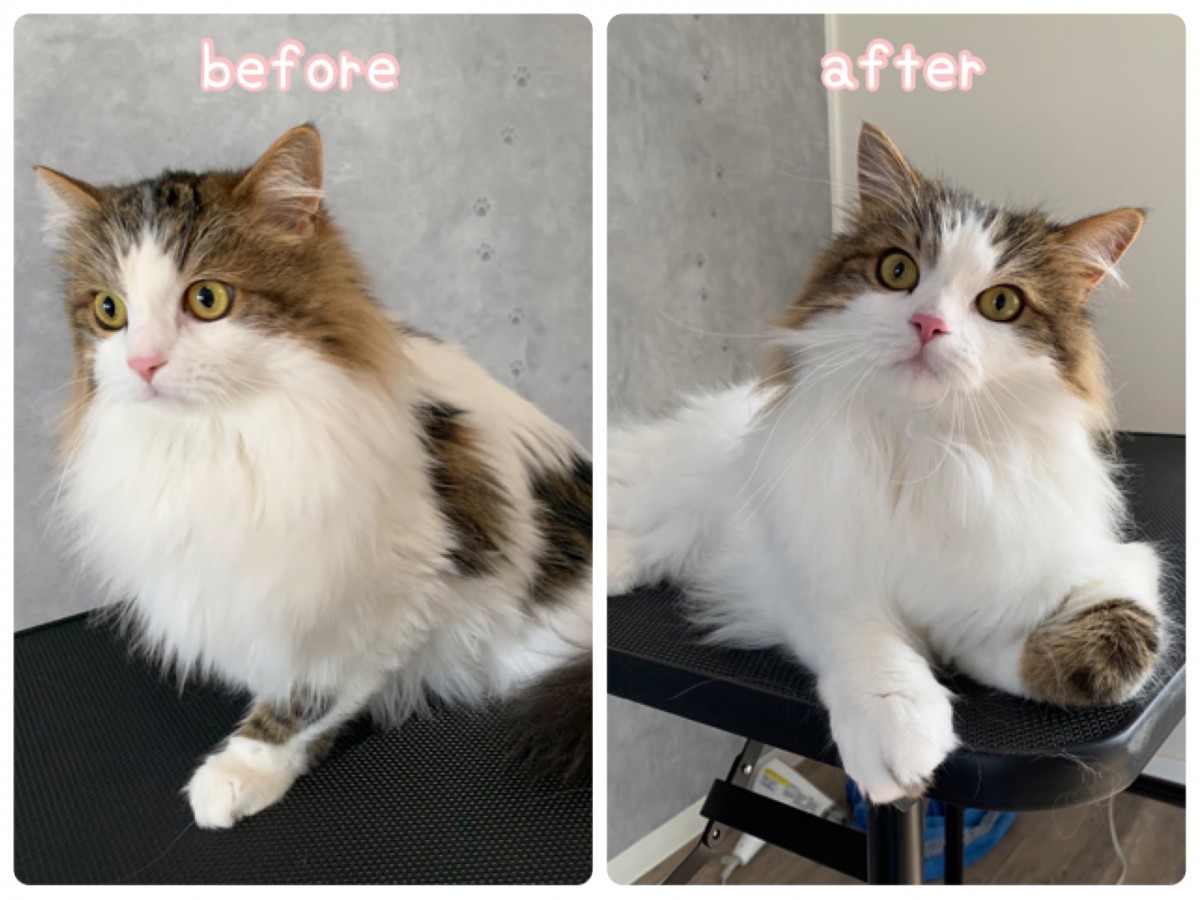 シャンプーのメニューをご利用頂いた3にゃん兄弟♪さらふわの仕上がりになりました。写真はシロくん。