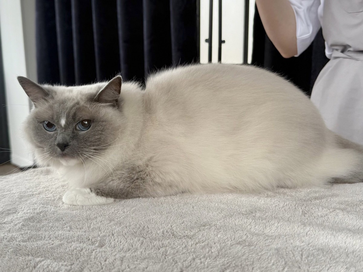 シャンプーをご利用頂いたラグドールのベアちゃん♪元々綺麗な毛並みが更にふわふわで美ニャン度UPです!