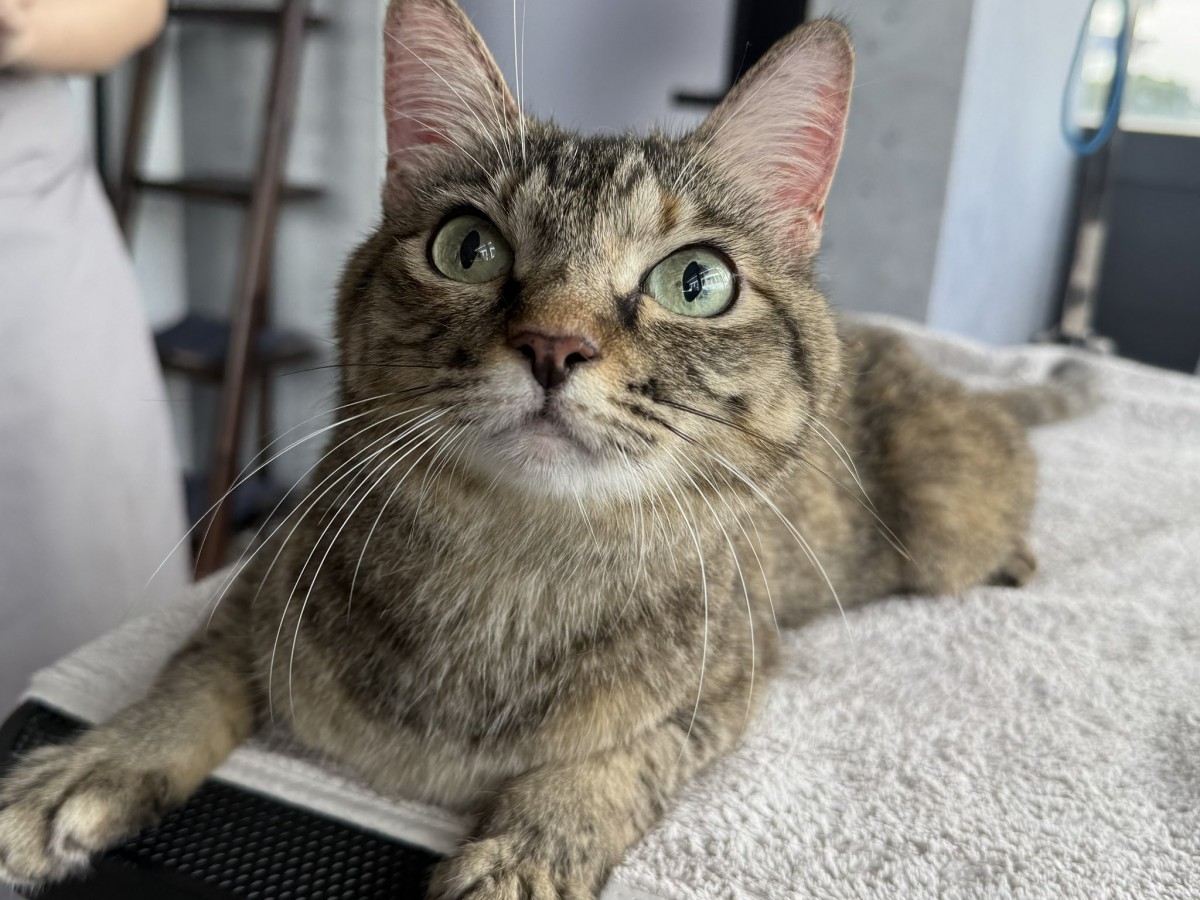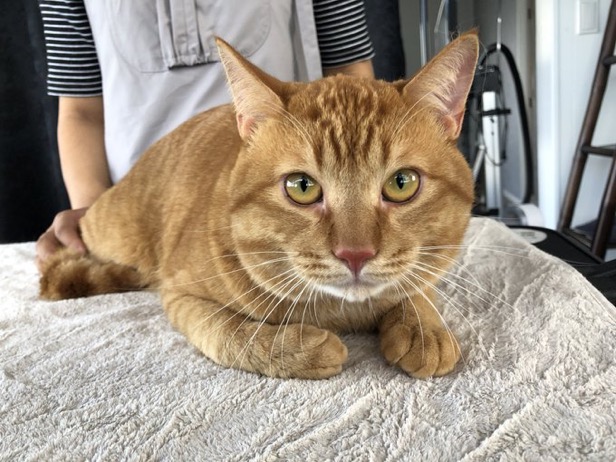 シャンプーのメニューをご利用頂いた3にゃん兄弟♪さらふわの仕上がりになりました。写真はトラちゃん。