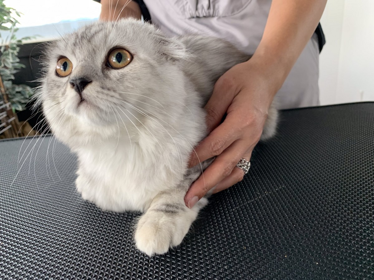 スコティッシュのルネくん。シャンプー、お爪切り、足裏の毛のカットをご利用頂きました。終始お利口さんでした。シャンプー後はほわほわの毛並みに♪