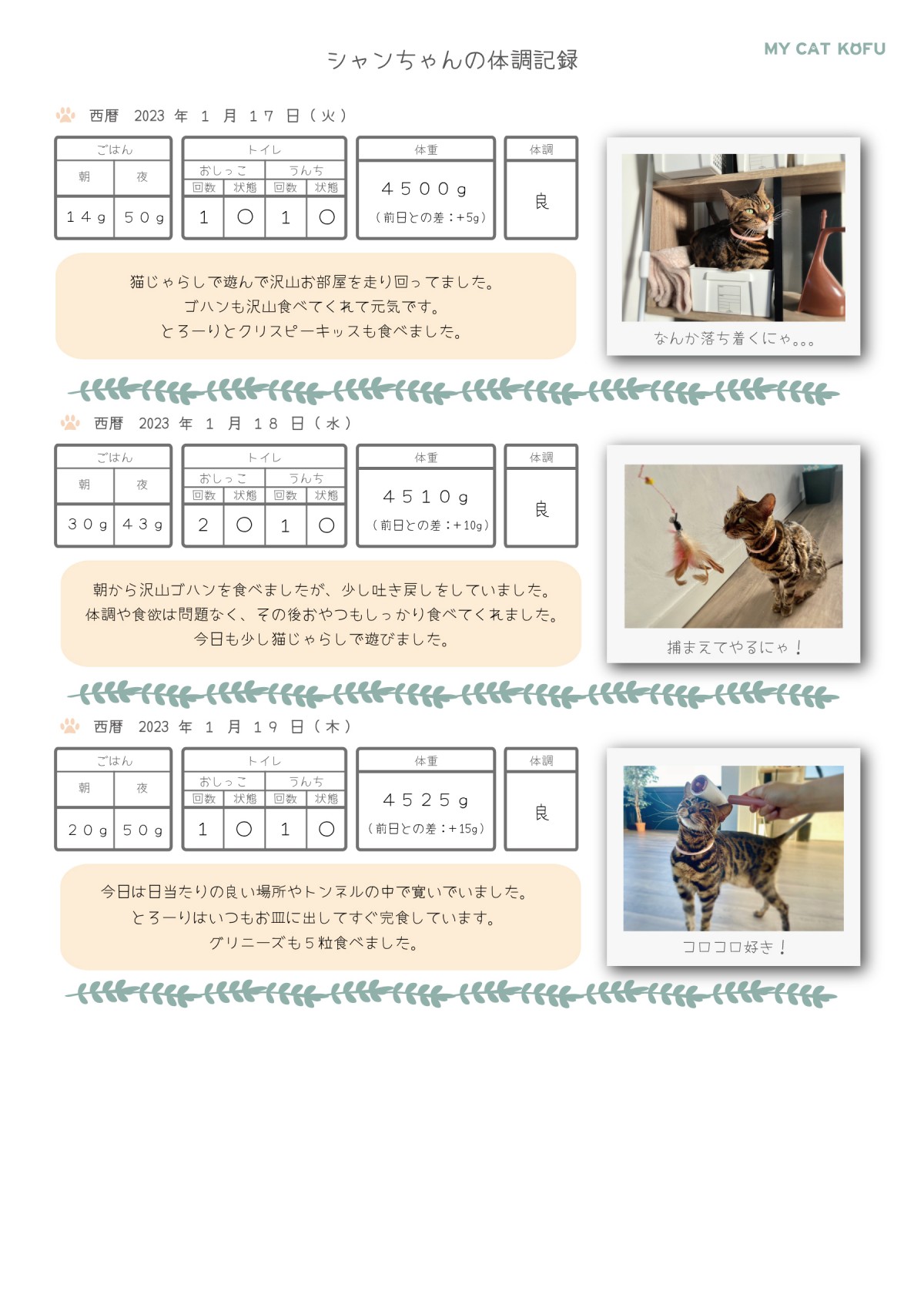 | 体調レポート(長期オプション) | 1日あたり¥500(税込) |